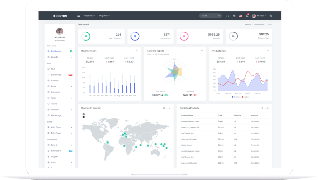 Minton is a fully featured premium admin template built on top of awesome Bootstrap 5, modern web technology HTML5, CSS3 and jQuery.